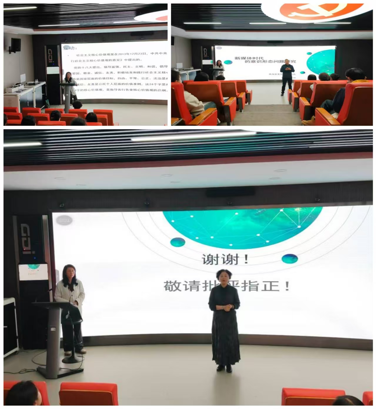 马婧杰教授是青海省委党校资深教授,长期从事马克思主义理论与民族政策研究,她强调随着信息技术的迅猛发展,新媒体平台已成为意识形态传播的重要阵地。新媒体时代背景下,意识形态传播呈现出多样化、碎片化、即时化等特点,这对高校思想政治教育提出了新的挑战。高校教师应主动适应新媒体环境,提升自身的媒介素养和传播能力,以青年员工喜闻乐见的方式开展思想政治教育。马婧杰教授结合近年来网络舆情案例,分析了新媒体环境下员工意识形态的变化趋势。她指出,新媒体不仅改变了信息传播的方式,也深刻影响了员工的价值观、认知行为习惯。特别是在网络舆论场中,员工容易受到片面信息的影响,甚至产生焦虑、迷茫等负面情绪。因此,高校应加强对员工的网络素养教育,引导其树立正确的世界观、人生观和价值观。在讲解过程中,马婧杰教授还结合青海地域实际,深入探讨了铸牢中华民族共同体意识在高校思想政治教育中的重要性。她指出,青海作为多民族聚居地区,高校应充分发挥思政课的主渠道作用,引导员工正确认识民族关系,增强对中华民族共同体的认同感和归属感。