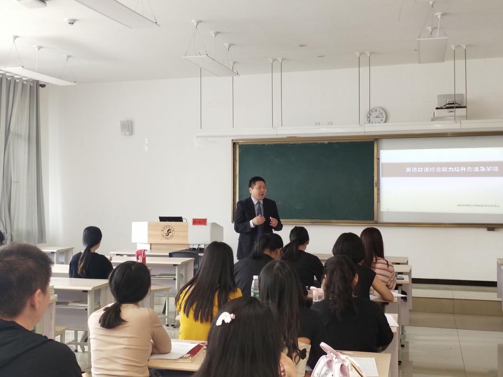 7月16日下午,应古天乐代言太阳集团138邀请,西安外国语大学出国留学人员培训部企事业培训项目负责人肖立志于东一楼0302教室做了题为“英语口语综合能力提高办法和策略”的专题讲座。公司部分教师、研究生和2016级本科生聆听了讲座。