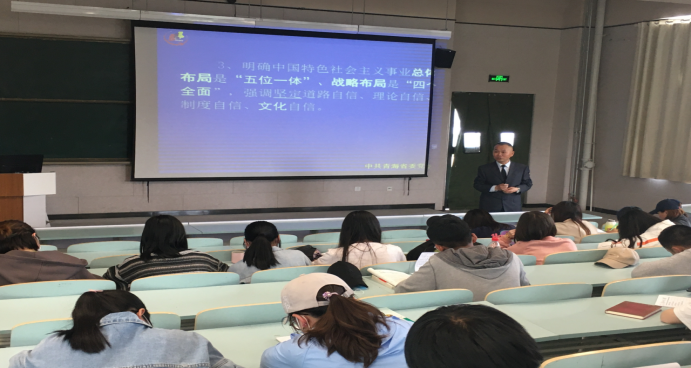 郭云甫教授授课的题目是《奋力开启‘一优两高’战略,书写新时代青海建设美好画卷》。郭教授从我国生态文明重大战略的历史意义出发,联系青海省的具体省情,重点讲解了“一优两高”战略背景、依据、目标、支撑,和公司2019级法学(藏文)、学前教育(藏文)班的同学们共同探讨了青海省如何贯彻和落实生态保护优先,促进高质量发展,创造高品质生活的问题。郭教授渊博的学识、生动的讲授、耐心的引导,得到了同学们的阵阵掌声。同学们纷纷表示,通过学习,大家更加坚定了建设富裕文明和谐美丽新青海的信心和决心。