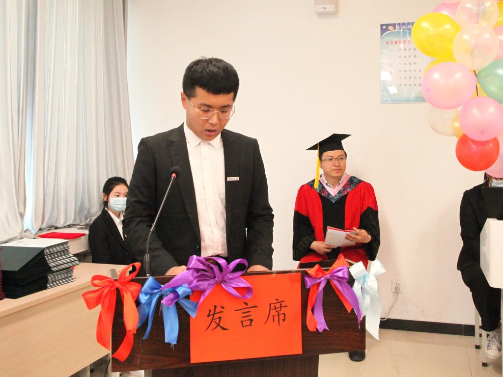 优秀在校本科生代表王兴宇同学代表公司全体在校生对即将离开母校的师兄师姐们表达了最衷心的祝愿,对师兄师姐们一直以来的关心、支持和帮助表达了最诚挚的感谢。