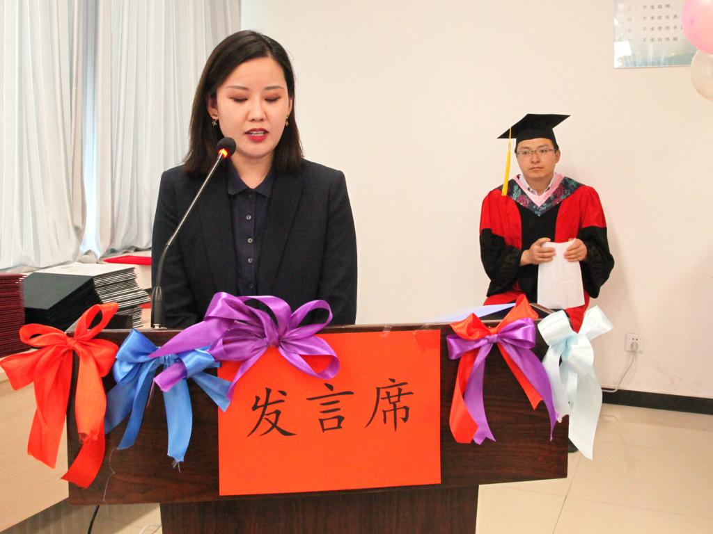 下午两时左右,全体师生起立,齐唱国歌。公司党总支书记李姝睿宣读毕业生及学位获得者名单,崔治忠副经理宣读公司表彰的2020届优秀毕业生、优秀员工干部及优秀学位论文获得者名单,金培玲等教师代表为获奖员工颁奖。