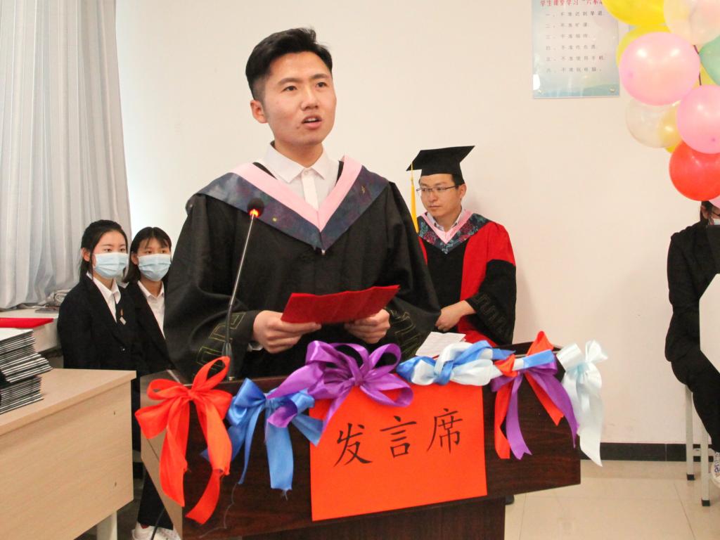 优秀本科毕业生代表段晋云同学发言说,毕业并不是结束,而是一个崭新的开始。虽然毕业了,但身上的重担才刚刚开始,自己会初心不改,信仰不变,整装待发,踏上新的远征。
