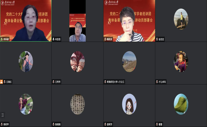 首先,宣传部长牟昱苍对做好二十大精神校内宣讲提出四点要求。第一,认真学习,全面把握好二十大的精神实质与核心要义;第二,立足“七个讲清楚”,牢牢掌握好宣讲的重点问题;第三,结合实际情况,讲清楚青海、青海师大新时代以来所发生的巨大变化;第四,站稳政治立场,严守宣讲纪律。接着,方立江、陈晓翔、鞠晓英、霍霞等同志就如何更好地进行宣讲,从不同的角度进行了备课分享。之后,全体巡讲团成员认真学习了《党的二十大精神宣讲提纲》。