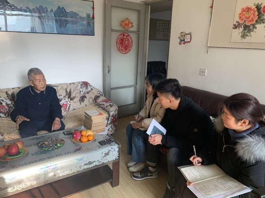 12月4日,我们第一次拜访了魏成德教授,由于对环境的不熟悉,在周围徘徊了好久才找到确切的位置。走到楼下,远远就看见一位老人站在门洞口,身体微弓但依然挺拔,衣着朴素且整齐,精气神十足,在冬日的寒风中犹如一颗青松。教授见到我们,亲切地握住我们的手,我感到教授的手有些凉,他一边和蔼地和我们打招呼一边带着我们上楼,让我们心里暖暖的。魏教授的家中极具学者风范:朴素的家具陈设、阳台上的绿植、满柜的新老书籍交叠在一起、有时代感但依然鲜亮的党徽无一不在展示着一位热爱生活、与时俱进的共产党员、学者的精神风采。