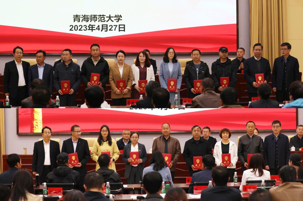 省教育厅党组成员、副厅长杨皓然,省委宣传部宣传教育处处长武良桃为青海省大中小学思政课一体化建设指导委员会专家指导组成员颁发聘任证书。