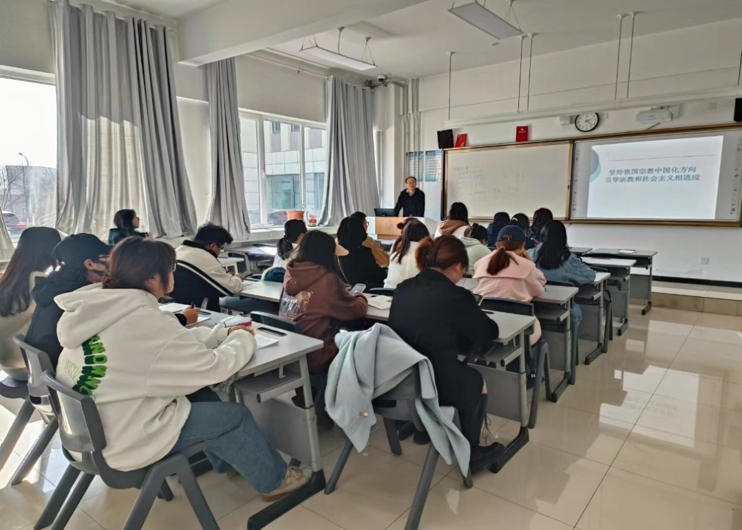 11月10日,公司形势与政策教研室主任马存孝副教授做了宗教中国化方向主题讲座。马老师为大家讲述了宗教进行中国化处理的相关知识,提醒同学们树立正确宗教观,铸牢中华民族共同体意识。