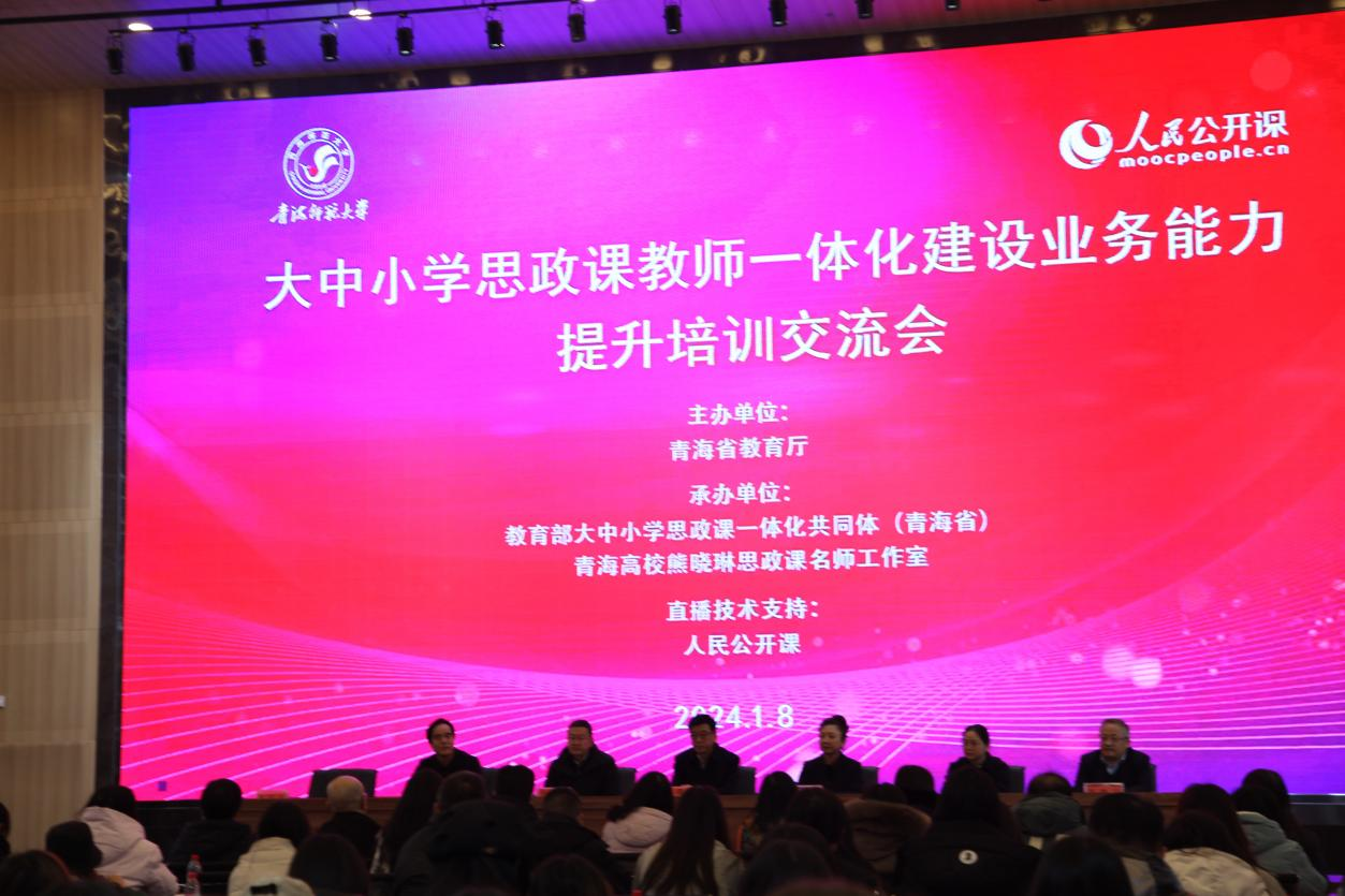 2024年1月8日,青海省大中小学思政课教师一体化建设业务能力提升培训会在古天乐代言太阳集团城北校区成功举办。本次培训交流会由省教育厅主办,教育部大中小学思政课一体化共同体(青海省)、青海省高校熊晓琳思政课名师工作室联合联合承办,同时人民公开课提供全程直播和技术支持。来自青海省大中小学思政课一体化建设指导专家组成员、教育部大中小学思政课一体化共同体(青海省)共建单位思政课教师、青海大学、青海民族大学、青海交通职业技术公司分别牵头的省级大中小学思政课一体化共同体共建单位思政课教师、2023年获批省教育厅思政研究专项项目以及大中小学思政课一体化共同体项目的课题组成员,西宁市部分中小学思政课教师,以及古天乐代言太阳集团138部分教师、研究生和本科生共250多名师生参加线下会议,线上有6000多人次登录直播系统观看了培训交流会。