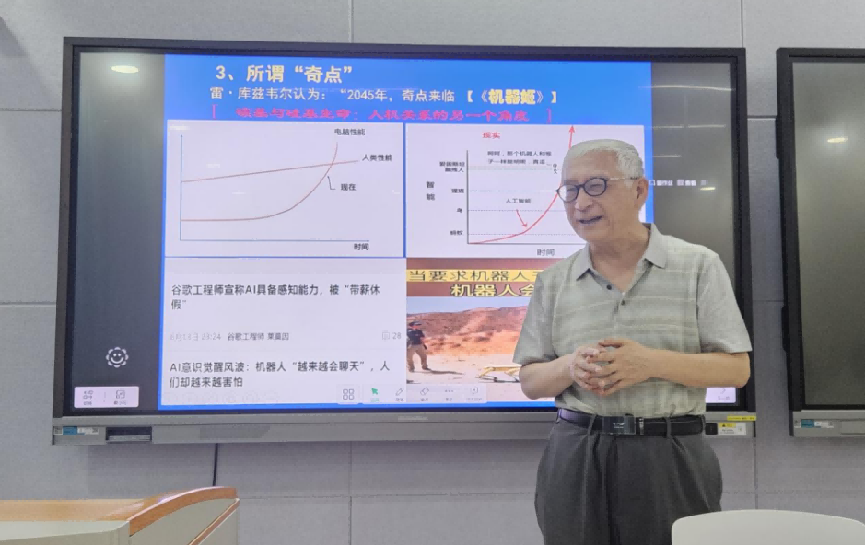 董春雨教授的讲座的主题为《从机器认识的不透明性看AI的本质及其限度》,从机器智能在数据处理、模式识别等方面的显著优势,到AI技术在医疗、金融、交通等领域得到广泛应用。机器智能的不透明性也引发了广泛的争议,带来了信任和安全的隐患。在面对日益强大的人工智能系统时,董教授指出人类应该理性地看待这种以机器为主体的社会角色的改变,要放眼未来,主动参与。