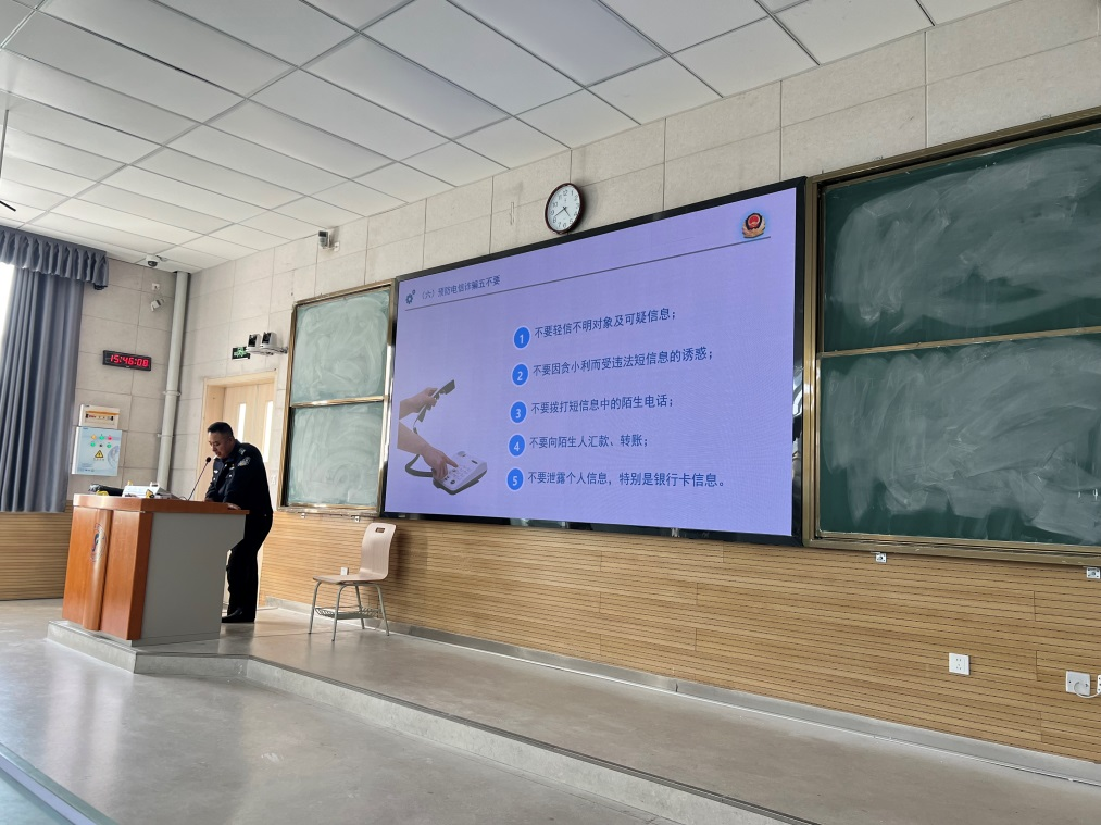 甄老师的讲述分为什么是电信诈骗、青海省电信诈骗现状、电信诈骗案例分析、电信诈骗的防范等四个方面。他以生动的案例和专业的知识,为师生们详细介绍了当前常见的诈骗手段和防范方法。让师生更加直观了解到诈骗分子的作案手法。甄老师强调电信诈骗无处不在,诈骗手段层出不穷,让人防不胜防,大家务必要提高警惕。