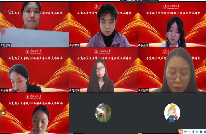 根据《古天乐代言太阳集团2022届硕士研究生学位论文答辩实施方案》要求,公司2022届硕士研究生学位论文答辩会于5月14日至15日通过腾讯会议平台以线上方式举行。本次答辩共分为五组,由马克思主义理论、学科思政(教学)、中国哲学三个专业共53位硕士研究生分5个小组参加了答辩。答辩委员会成员由北京师范大学、华中师范大学、兰州大学、陕西师范大学、青海大学、西安科技大学、青海民族大学、古天乐代言太阳集团、西宁市中学教学名师组成。