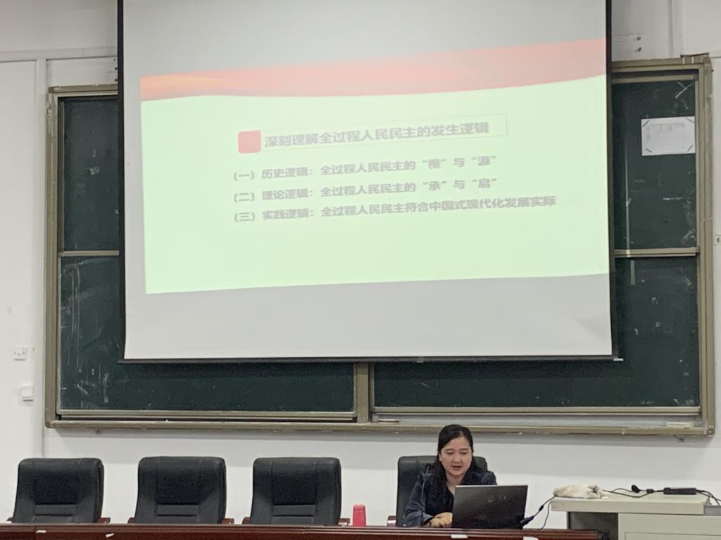 首先,赵晓红教授介绍了全过程人民民主的科学内涵、全过程人民民主的本质属性、全过程人民民主的制度保障、全过程人民民主的制度优势。赵教授从古代到现代,从中国到外国从不同维度、国家对民主概念、区分作了详细介绍,体现了中国式民主符合中国国情。