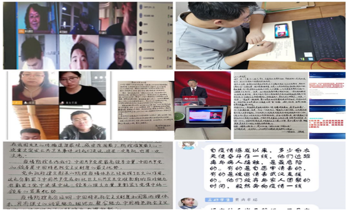2018级研究生张栋第一时间说到:“四位老师的讲解,让我更加感受到了祖国的强大和中国特色社会主义制度的优越性,也让我感受到作为一名青年人身上的责任与担当。这场疫情阻击战是一场艰巨但又必胜的战役,这是一场全民动员、众志成城的战斗。”本科生段晋云:观课的最大感受就是抗疫之中的信任与责任,民众信任党和政府,患者信任抗疫工作者,民众与民众之间的相互信任,国家与国家之间相互援助。而信任的背后是源于责任,工作人员不辱使命与担当,自愿出征武汉。国家承担起抗疫的责任,在世界面前做表率,彰显了中国特色社会主义制度的优势,同时更加坚定了我们内心的“四个自信”。正如课里老师所说“生于种花家,何其荣幸!”我们青年人一定要承担起责任与担当,把小我融入大我,与祖国和人民同呼吸共命运!