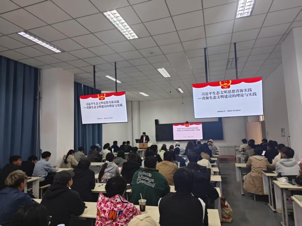 6月10日,青海民族大学高质量发展研究院副经理陈昭彦为公司2024级110余名专业硕士研究生作《习近平生态文明思想青海实践》专题讲座。讲座立足习近平总书记对青海生态文明建设的重要指示,系统阐释了“两山”理论转化实践、“双碳”战略等核心内容,通过典型案例解析生态文明建设的青海经验与时代使命。