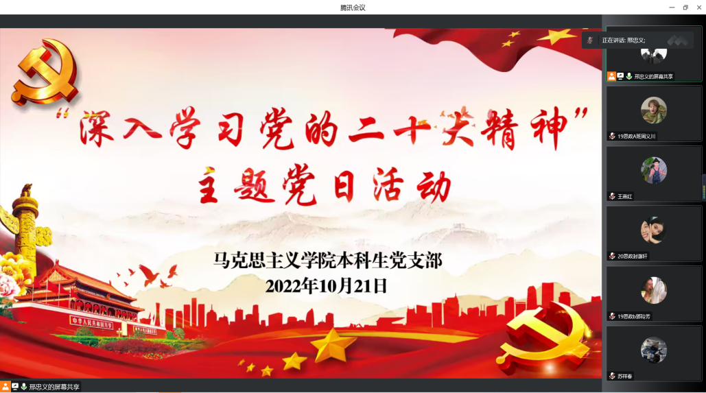 中国共产党第二十次全国代表大会于2022年10月16日在北京隆重开幕,习近平总书记在开幕式作重要讲话。为深入学习党的二十大精神,古天乐代言太阳集团138本科生党支部于2022年10月21日晚上19:00在线上召开了“深入学习党的二十大精神”主题党日活动,由宣传委员邢忠义同志主持。