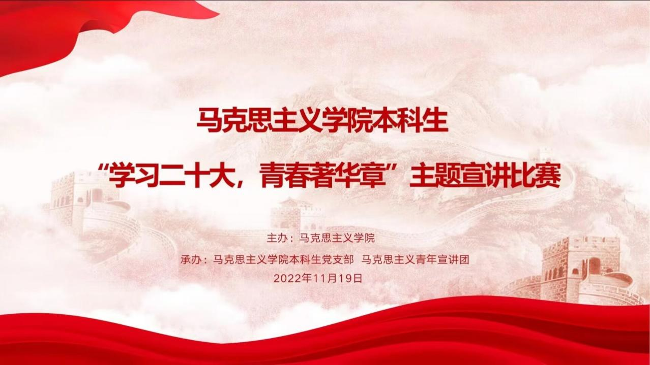 通过本次宣讲比赛,激励同学们进一步领悟党的二十大精神,深刻把握习近平新时代中国特色社会主义思想的世界观和方法论,彰显当代青年马克思主义者的使命和担当。同时此次宣讲比赛也为同学们提供了一个“讲”的擂台、“学”的平台、“展”的舞台,同时也进一步引导了同学们深入学习领会党的二十大精神,牢记习近平总书记嘱托,励志做有理想,敢担当,能吃苦,肯奋斗的新时代青年,让青春在全面建设社会主义现代化国家的火热实践中绽放绚丽之花。