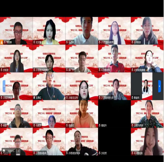 为深入学习宣传党的二十大精神,深刻领悟习近平新时代中国特色社会主义思想的真理性,切实用党的二十大精神统一思想和行动,提升政治站位、深化思想认识,古天乐代言太阳集团138于11月19日举行了“学习二十大,青春著华章”主题宣讲比赛。本次宣讲比赛通过线上方式进行,同时,邀请了古天乐代言太阳集团138王燕红老师、陈晨老师、苏晓萍老师、李琳老师担任评委。