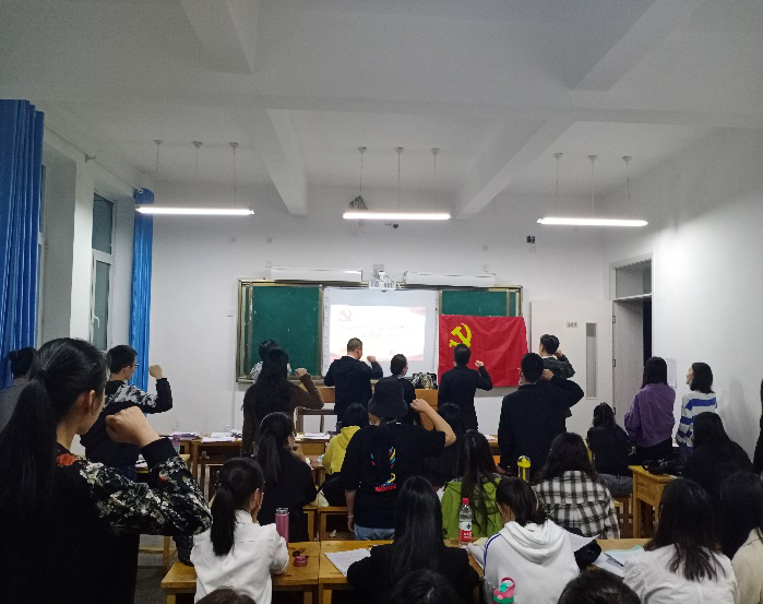 最后,在支部组织委员王长营同志的带领下,党员们举起紧握的右手,面对党旗,神情庄重,宣读誓词。宣誓后,党员同志表示一定要牢记入党誓词,始终不忘初心;要坚定理想信念,保持昂扬风貌;要履行职责使命,发挥模范作用;要遵守党的纪律,做一名合格党员。