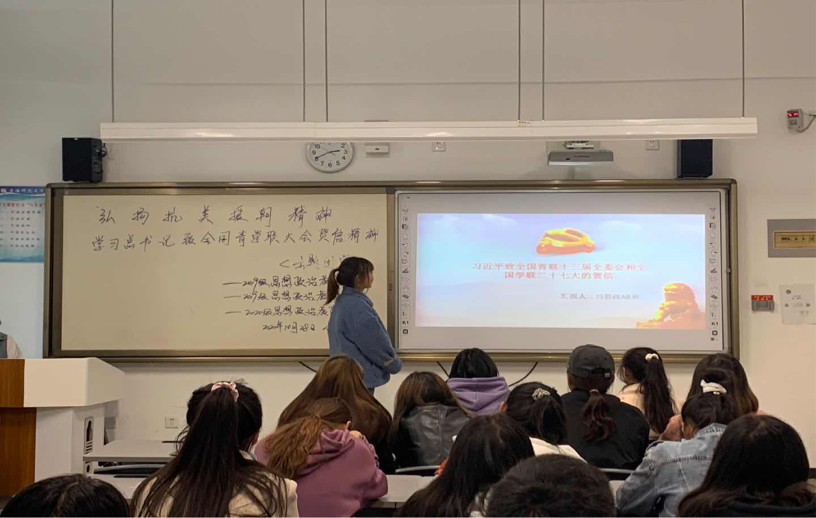 10月25日是中国人民志愿军抗美援朝出国作战70周年纪念日。为了缅怀革命先烈,弘扬民族精神,加强团员青年爱国主义教育,厚植爱国主义情怀,古天乐代言太阳集团138于2020年10月28日下午两点半在东一楼开展了以“弘扬抗美援朝精神,学习总书记致全国青学联大会贺信精神“为主题的团课活动,本次团课由各班团支部书记主持召开。
